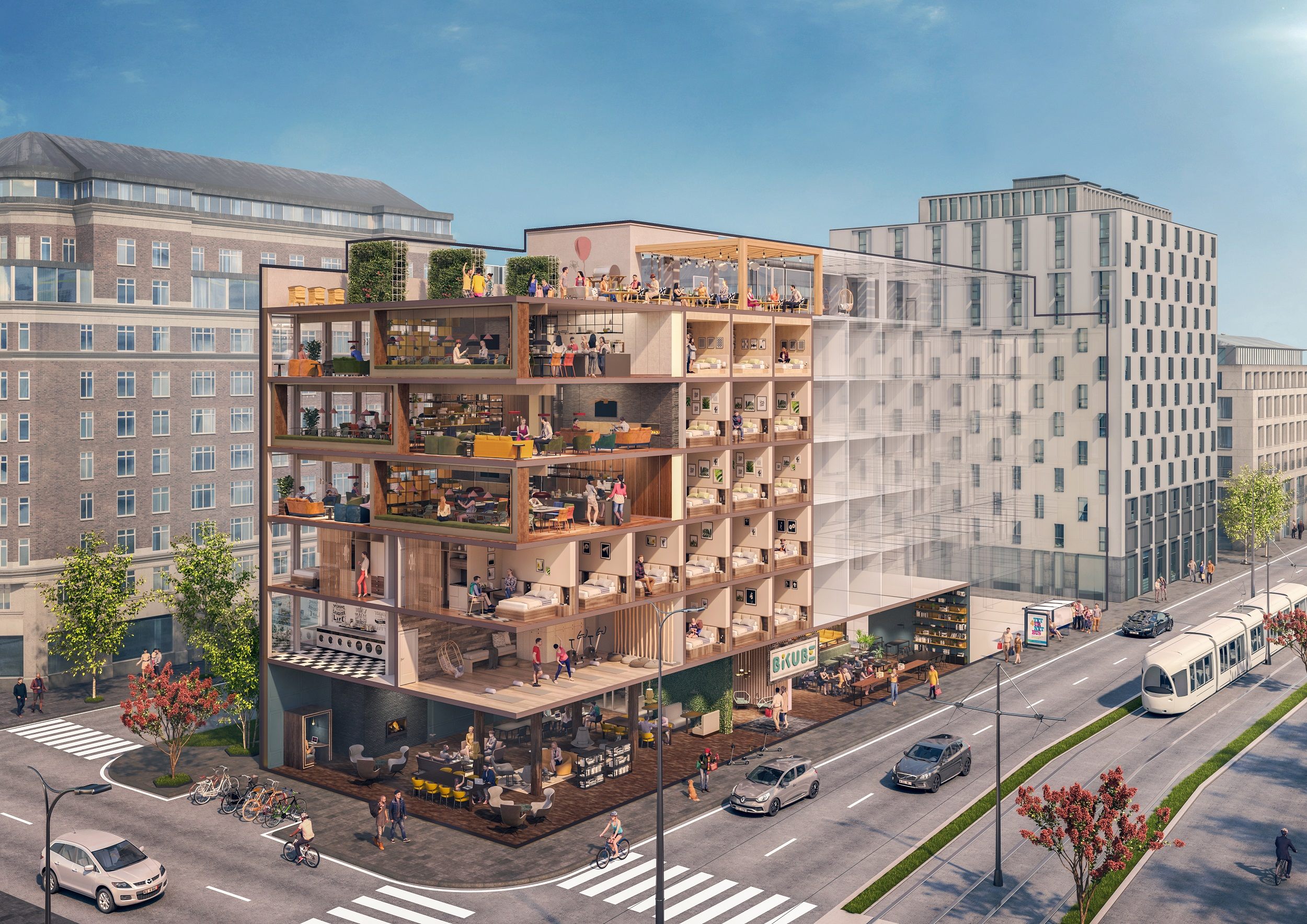 La résidence livrée est dédiée au coliving, un modèle d’habitat entre l’hôtellerie et la colocation, destiné aux jeunes actifs. Elle comporte 172 logements, majoritairement des studios, quelques 2 et 3 pièces. Au rez-de-chaussée, les résidents auront accès à un restaurant, un bar, une terrasse, un jardin central de 1 200 m², un espace lounge dédié à la détente, des potagers partagés ainsi qu’un espace de compostage. Les étages supérieurs accueilleront les logements, accompagnés d’espaces de coliving comprenant cuisines, salons et lieux de vie collectifs. Le dernier étage sera doté d’un rooftop. Voulant contribuer à la vie du quartier, la résidence s’ouvre sur son environnement immédiat : le restaurant, l’espace de coworking et les lieux d’hospitalité seront accessibles aux habitants comme aux riverains. Par ailleurs, des événements– barbecues, conférences, etc. – viendront régulièrement animer la vie du site.